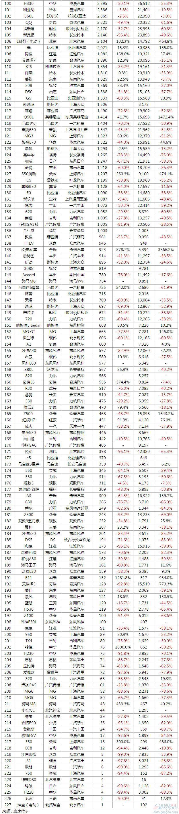 11月份最全最直观的391款车型销量排行榜