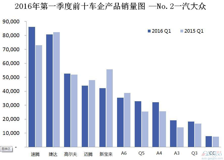 2016年第一季度前十车企产品销量图 —No.2一汽大众