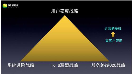 因此,“用户密度战略”处于美赛达构建的车联网生态系统金字塔的塔尖,而位于基座的、成就塔尖高度的则是:系统进阶战略、To B联盟战略、服务终端O2O战略。庄亮结合市场现状分析了美赛达为何采取、以及如何推进这三大基座战略。
