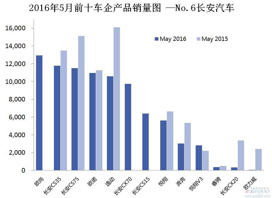 2016年5月前十车企产品销量图 —No.6长安汽车