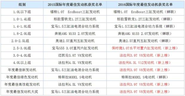 2016国际发动机大奖的获奖名单: