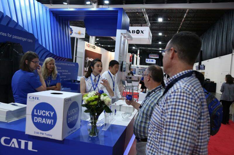 宁德时代展台55平方米,是2016北美电池展上最大面积展台,主要分为乘用车应用展示区、商用车应用展示区、储能应用展示区和电池管理系统(BMS)展示区。展品包括适用于乘用车的纯电动、起停、微混电池包,以及适用于商用车的标准电池包,4C快充产品;更有适用于储能应用的单体200Ah超大容量电芯在内的全部明星产品。