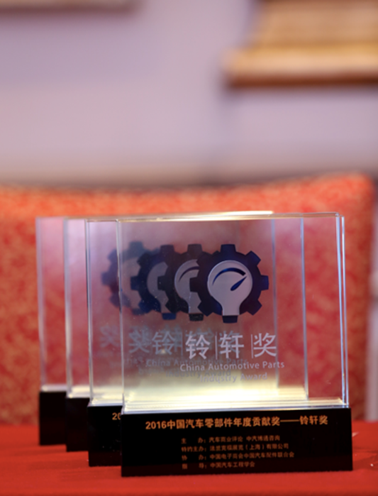 图注:2016中国汽车零部件年度贡献奖——铃轩奖奖杯