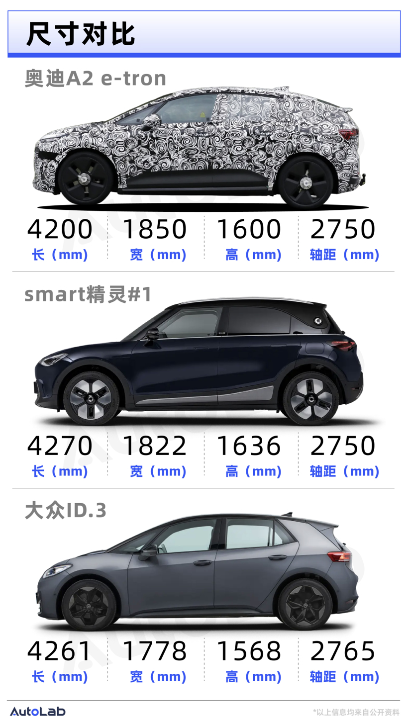在尺寸上,新车的尺寸预计会被定在4.2米级,接近于smart精灵#1和大众ID.3。