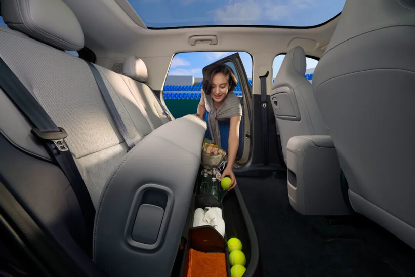 首先,同级领先88.1%得房率,实现空间利用率最大化,满足家庭多元出行需求;其次,二排坐垫可上翻,放置大件物品装卸更省力,更有39L半封闭式储物区域,提升整洁与隐私性。