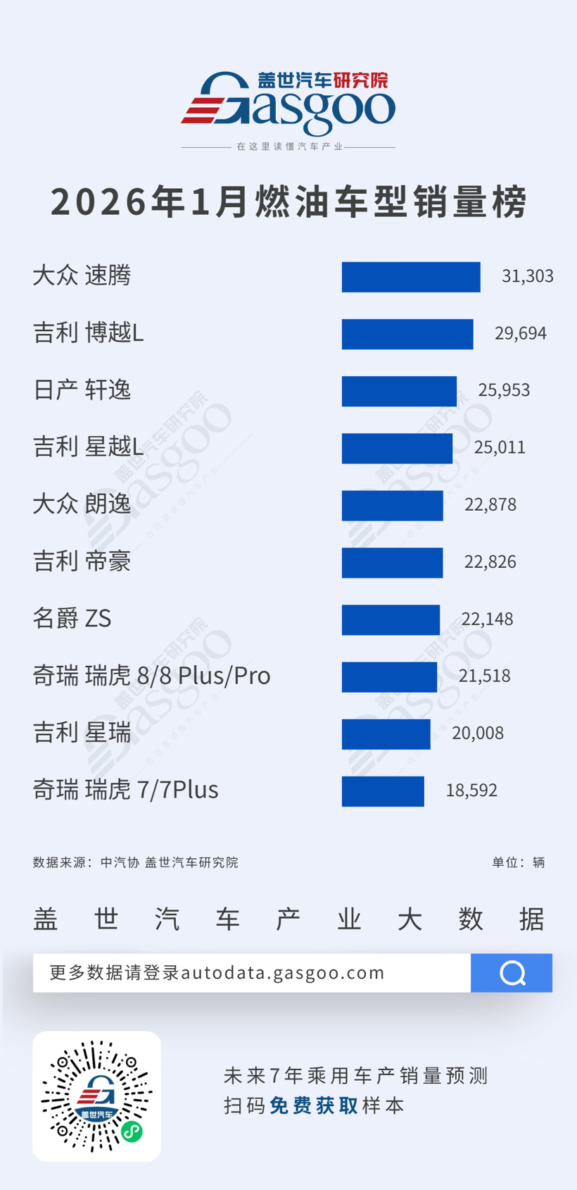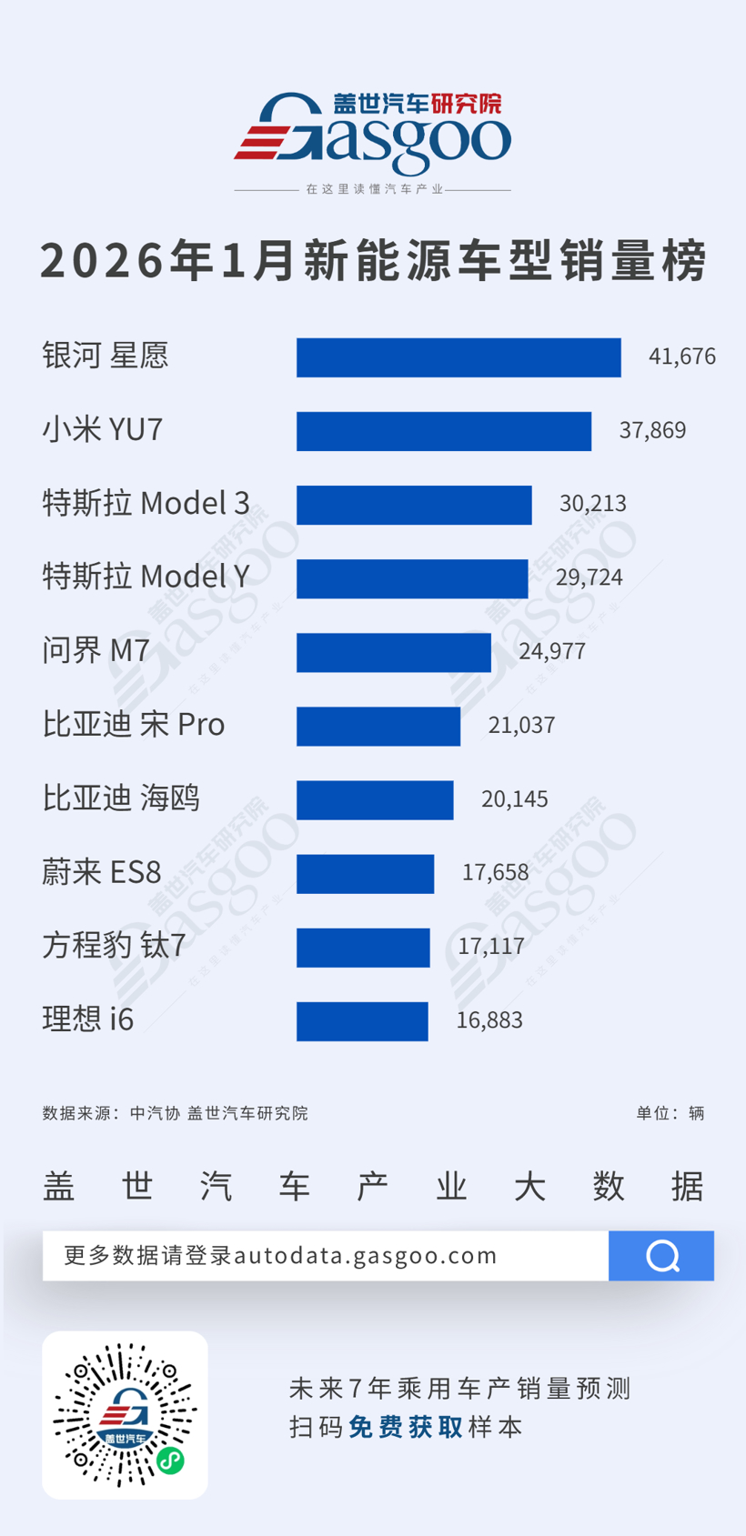 2026年1月燃油车型/新能源车型销量榜:银河星愿登顶新能源,大众速腾领跑燃油车丨盖世汽车研究院