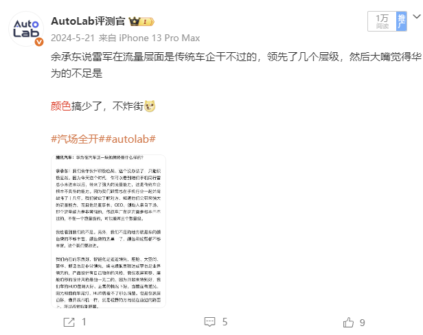 余承东唯一承认不如小米的就是当时的智界S7颜色不够多。