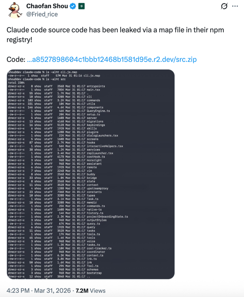智东西3 月31日消息,Anthropic 在发布 Claude Code 相关 npm 包过程中,因误包含 source map 文件,导致内部源码路径被解析并还原。事件最早由开发者在 X(原 Twitter)平台披露,再经过媒体加工,逐渐演变为“硅谷炸锅”“开源”等情绪化表述。类似案例在科技圈非常常见,比如过去多次 GitHub 私有仓库泄露事件,都会在短时间内被放大成“重大技术突破”。从时间节奏来看,这是一次“发布即泄露”的典型工程事故,而非长期潜伏或黑客攻击行为。