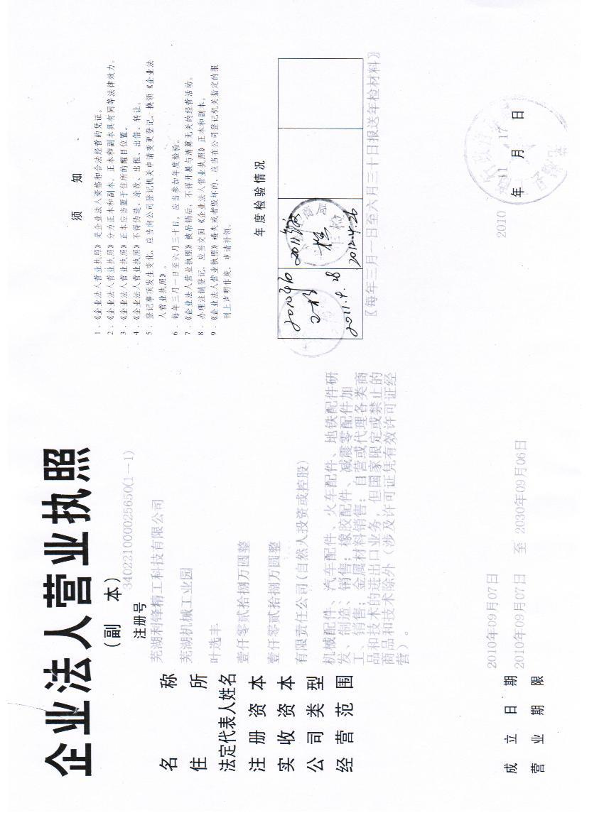 曾用名 | - | 英文名 | WUHU LIFENG PRECISION TECHNOLOGY CO.,LTD |