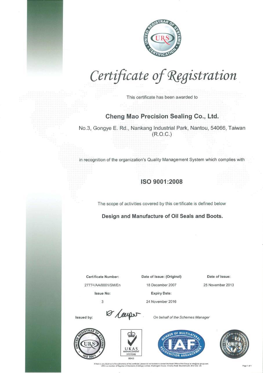 晟茂於2010年榮獲ISO/TS 16949:2009 之品質認證,在品質優先觀念下,我們持續不斷地提升品質、研發及突破,以提供給我們的客戶最好的品質、效率及具有競爭性的價格。