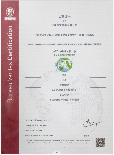 公司从2011年开始执行质量体系管理,现如今提升为IATF16949,过程中质量管控严格按照体系标准执行。