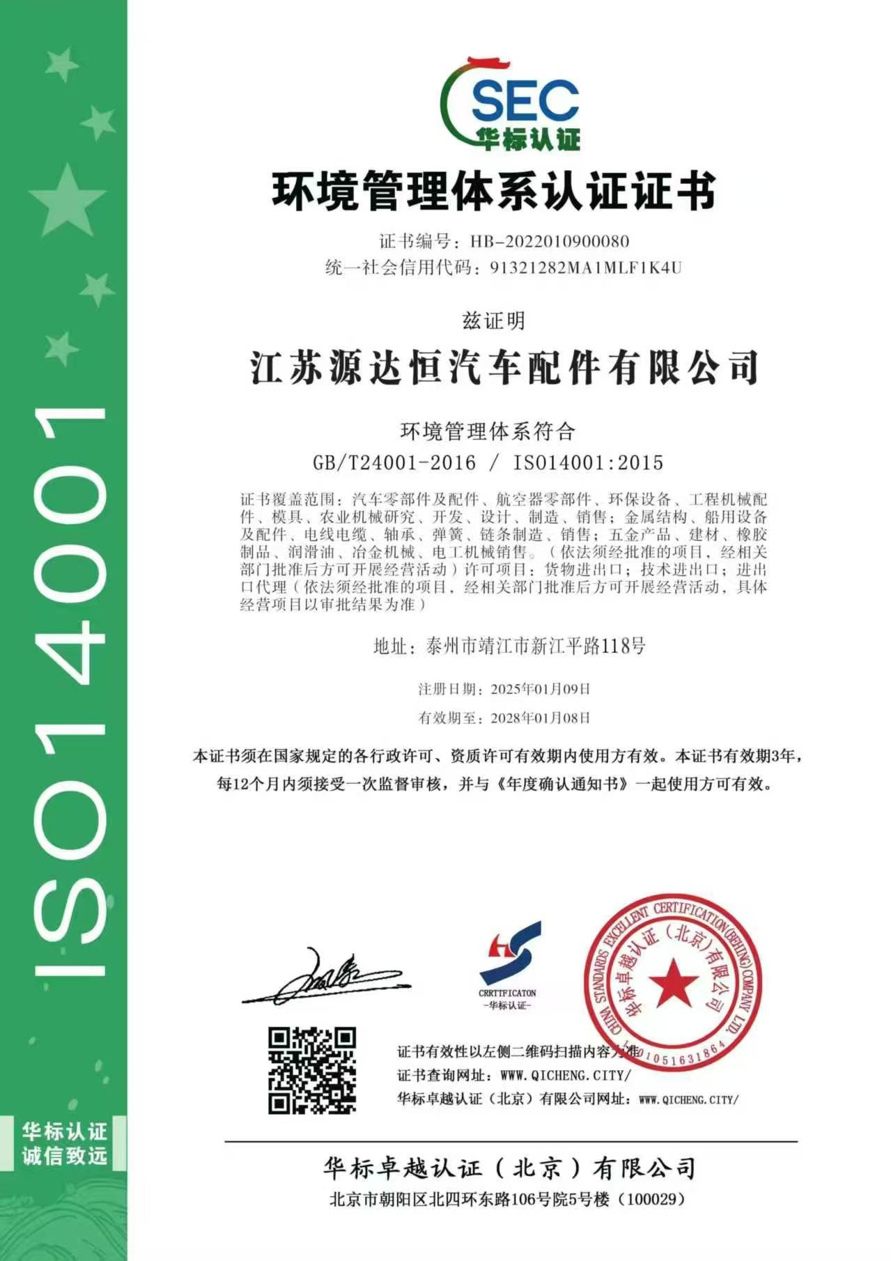 曾用名 | 靖江源达恒汽车配件有限公司; | 英文名 | Jiangsu Yuandaheng Auto Parts Co. , Ltd. |