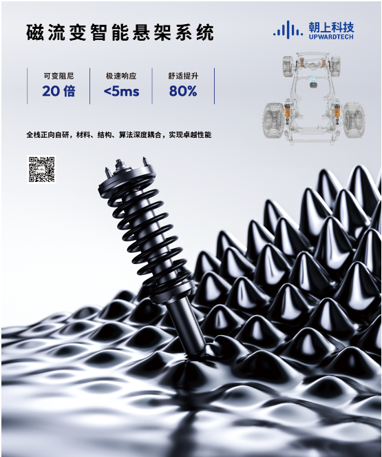 朝上科技通过正向自研,实现了材料、结构、算法三者的深度耦合,推出了全国首款自主研发与生产、基于世界前沿技术的磁流变悬架系统。